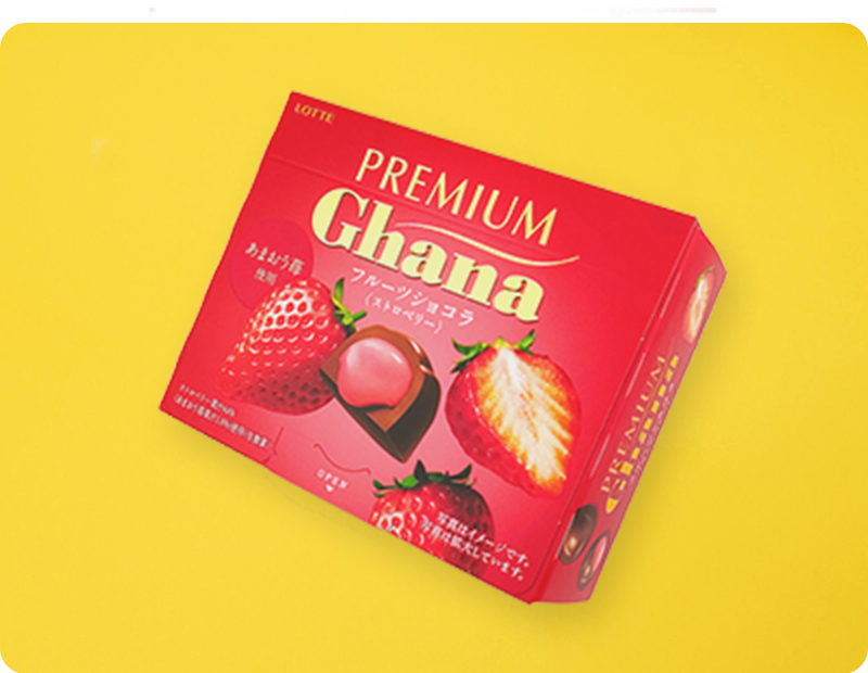 Premium chocolate with the fresh fruitiness of Fukuoka Kyushu Amaou strawberries and the rich flavor of Ghana milk.